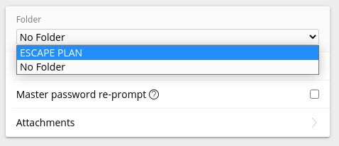 Notice that you can even prompt for a Master Password Re-Prompt, which requires you to type your Master Password a second time before you can view the contents of this entry.