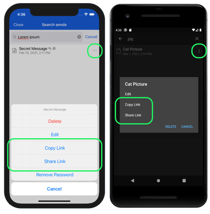 Once copied, share your Send link with intended recipients however you prefer. Sends are end-to-end encrypted, so you don't need to worry about exposing any data to whatever intermediary communications services you use.
