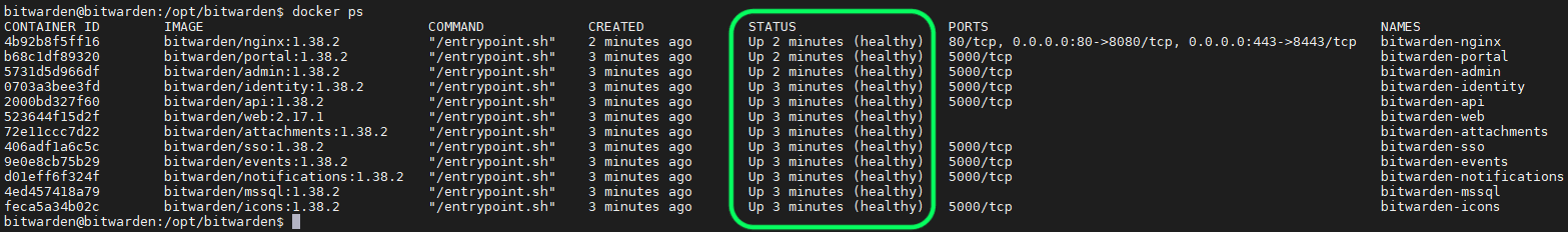 The first time you start Bitwarden it may take some time as it downloads all of the images from Docker Hub.
