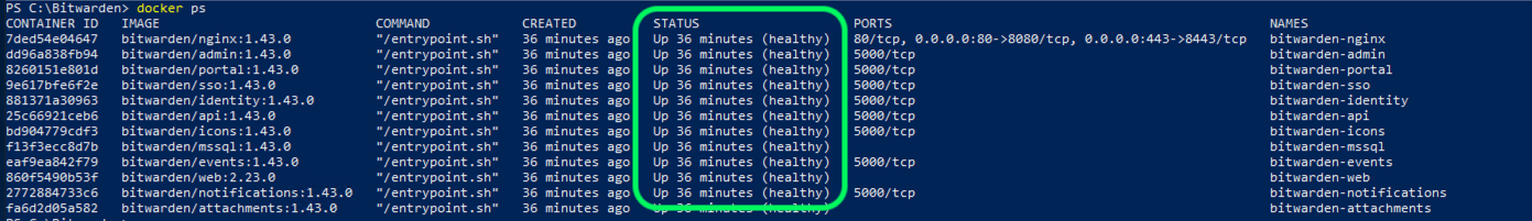 The first time you start Bitwarden it may take some time as it downloads images from Docker Hub.