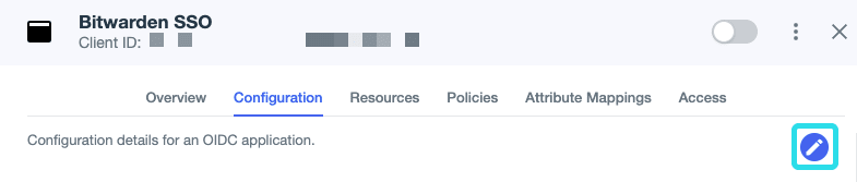In the edit screen, fill in the following values retrieved from the Bitwarden Single sign-on screen: